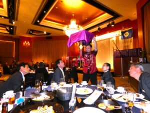 また、いつも盛り上がるアトラクションでは、チャイニー古賀様の中国四川省の伝統芸能の変面マジックショーで、L Lの方も参加され、至近距離で見せるユーモアなマジックは、会場いっぱいの笑顔に包まれました。いつも同伴例会の時に参加して下さるLLの方も楽しみにされてる様で、大変嬉しく思います。